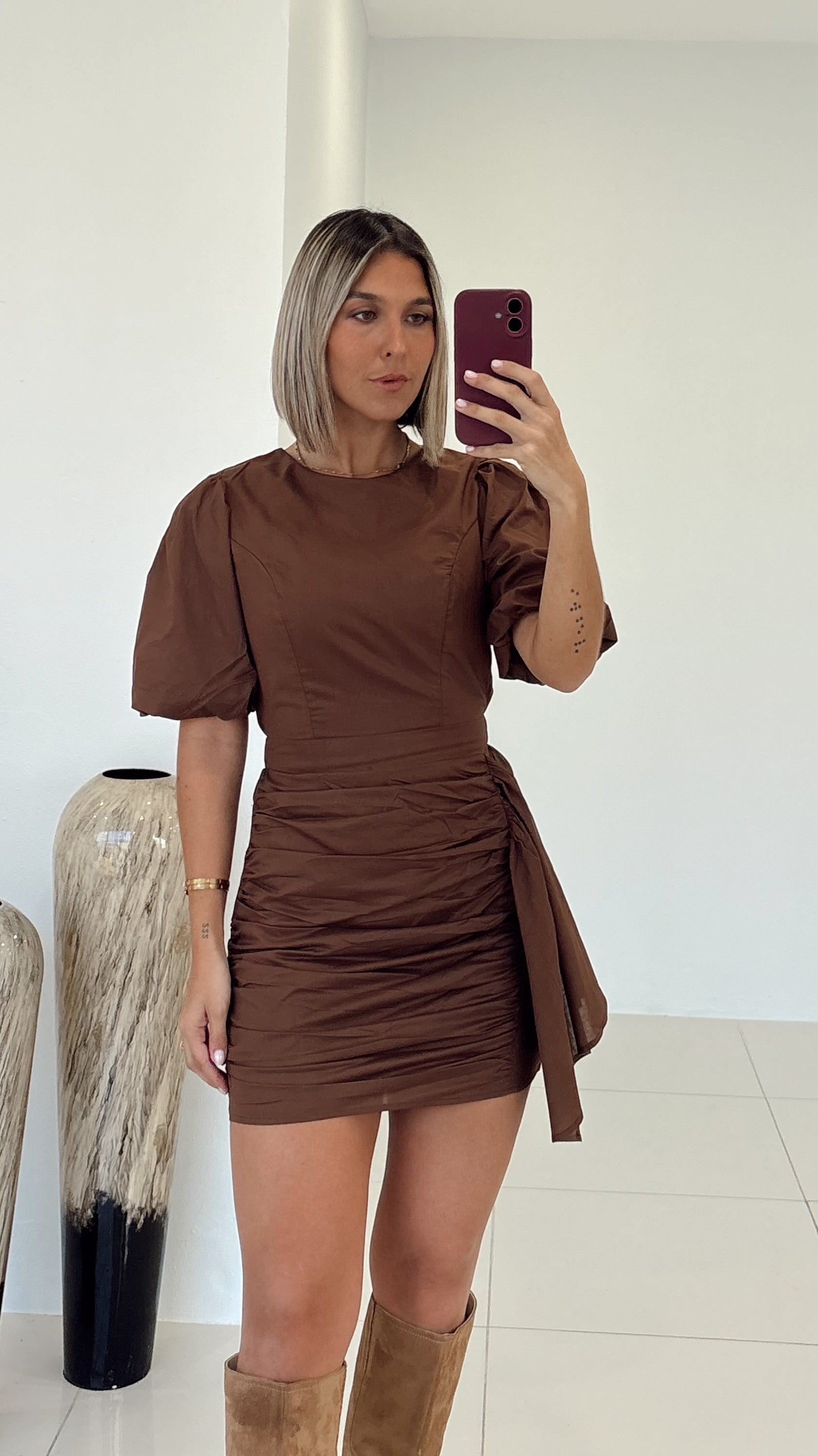 Brown - Voile Mini Dress