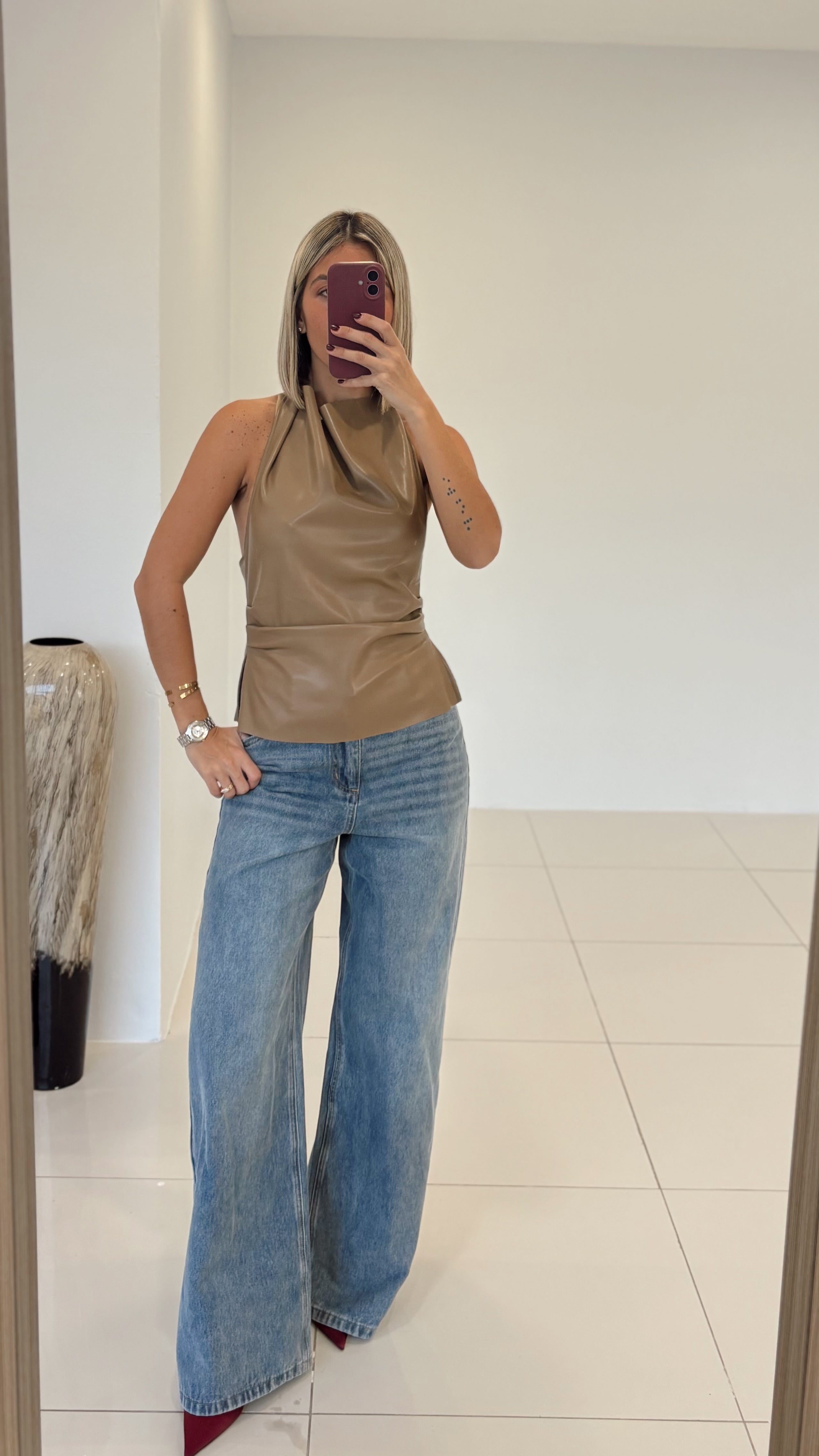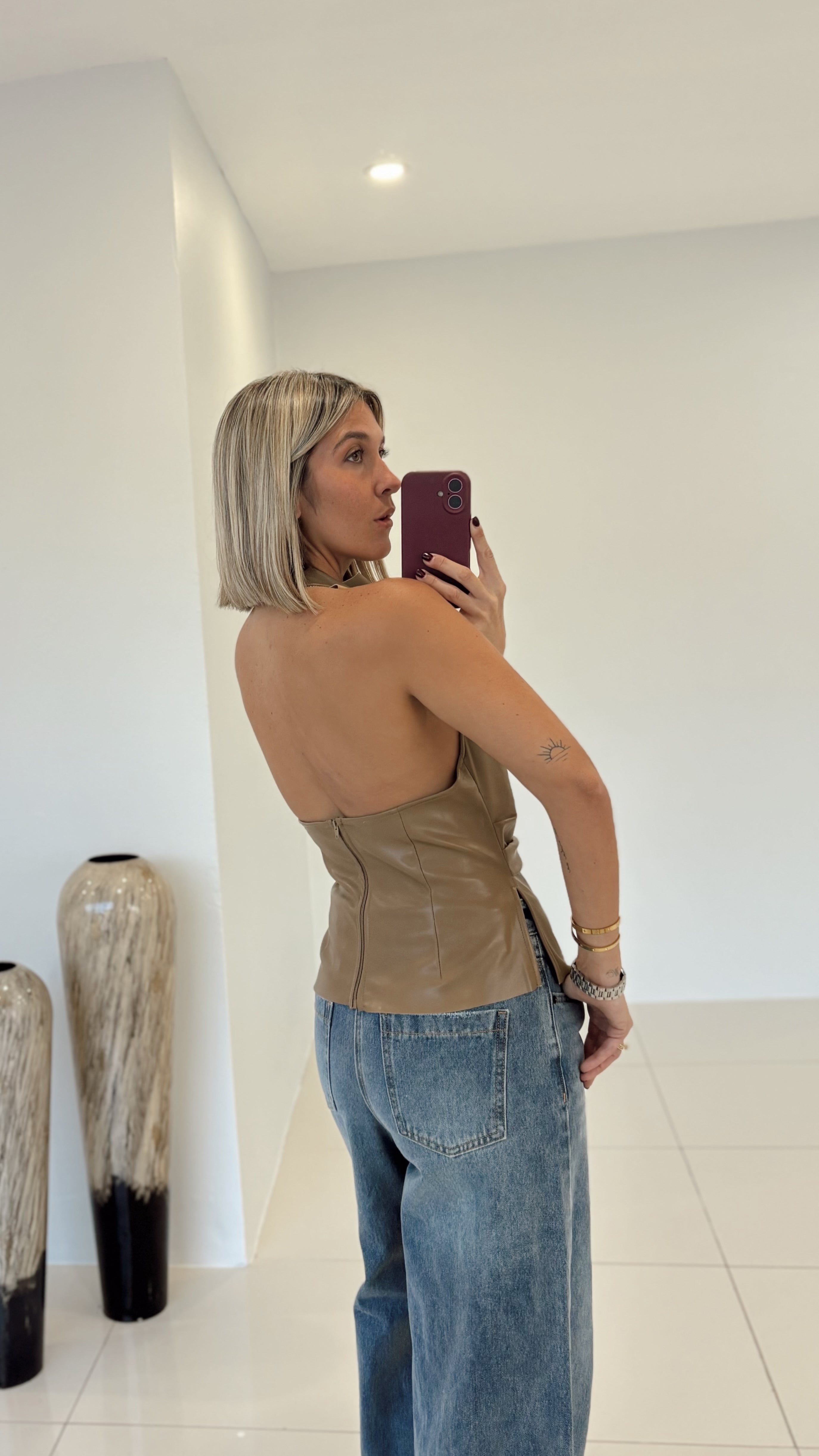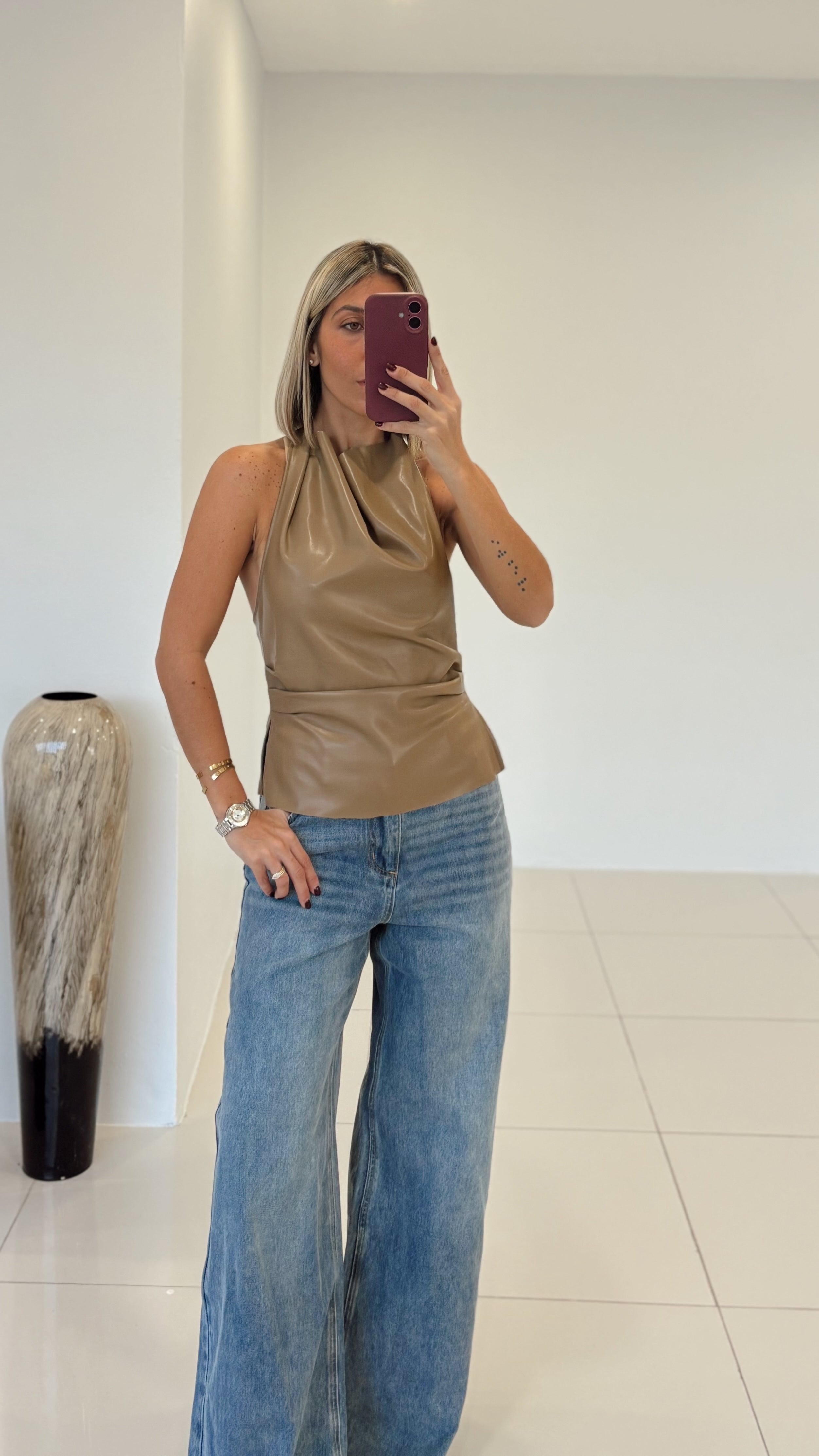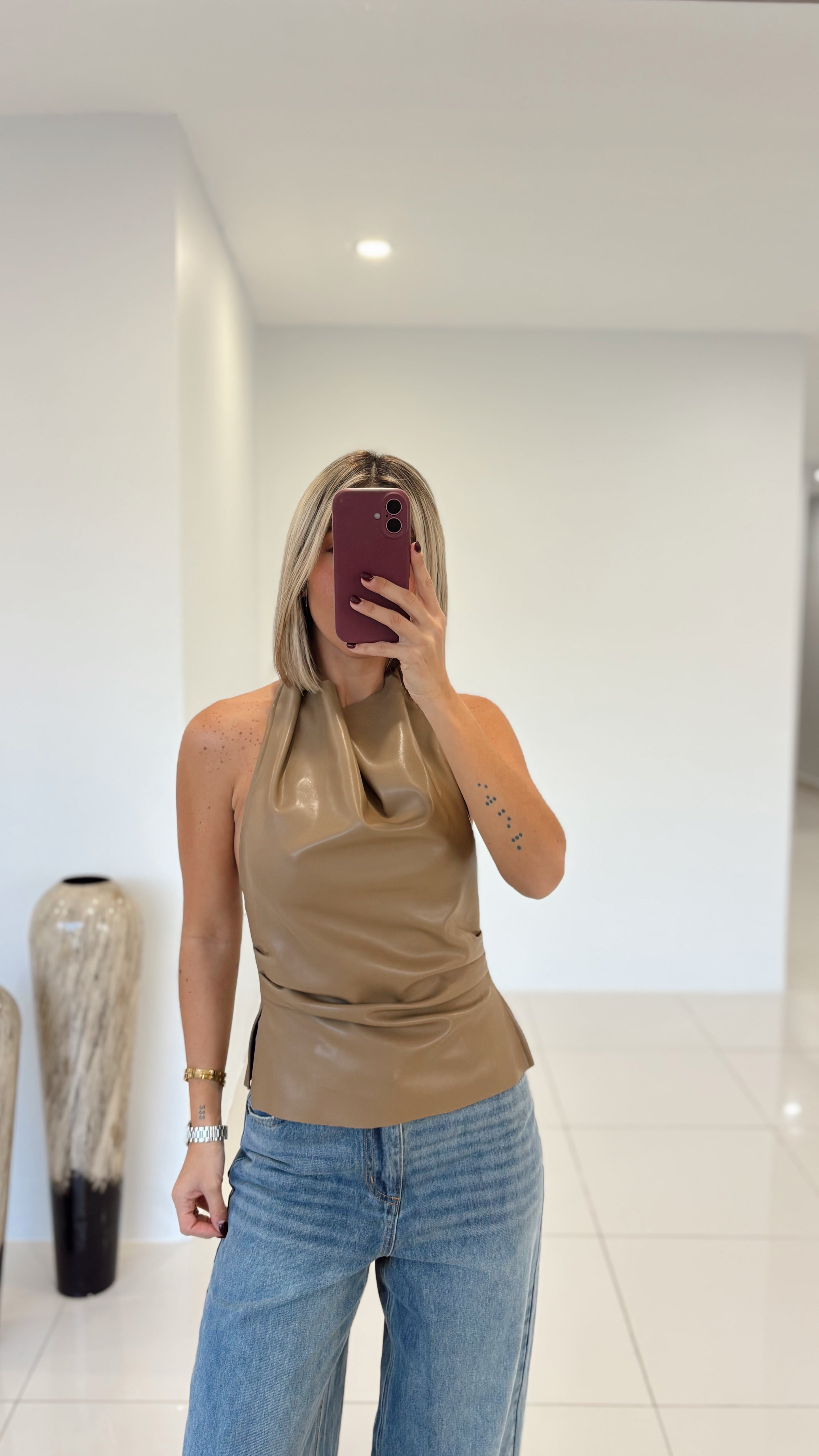 Latte Pu Leather Top