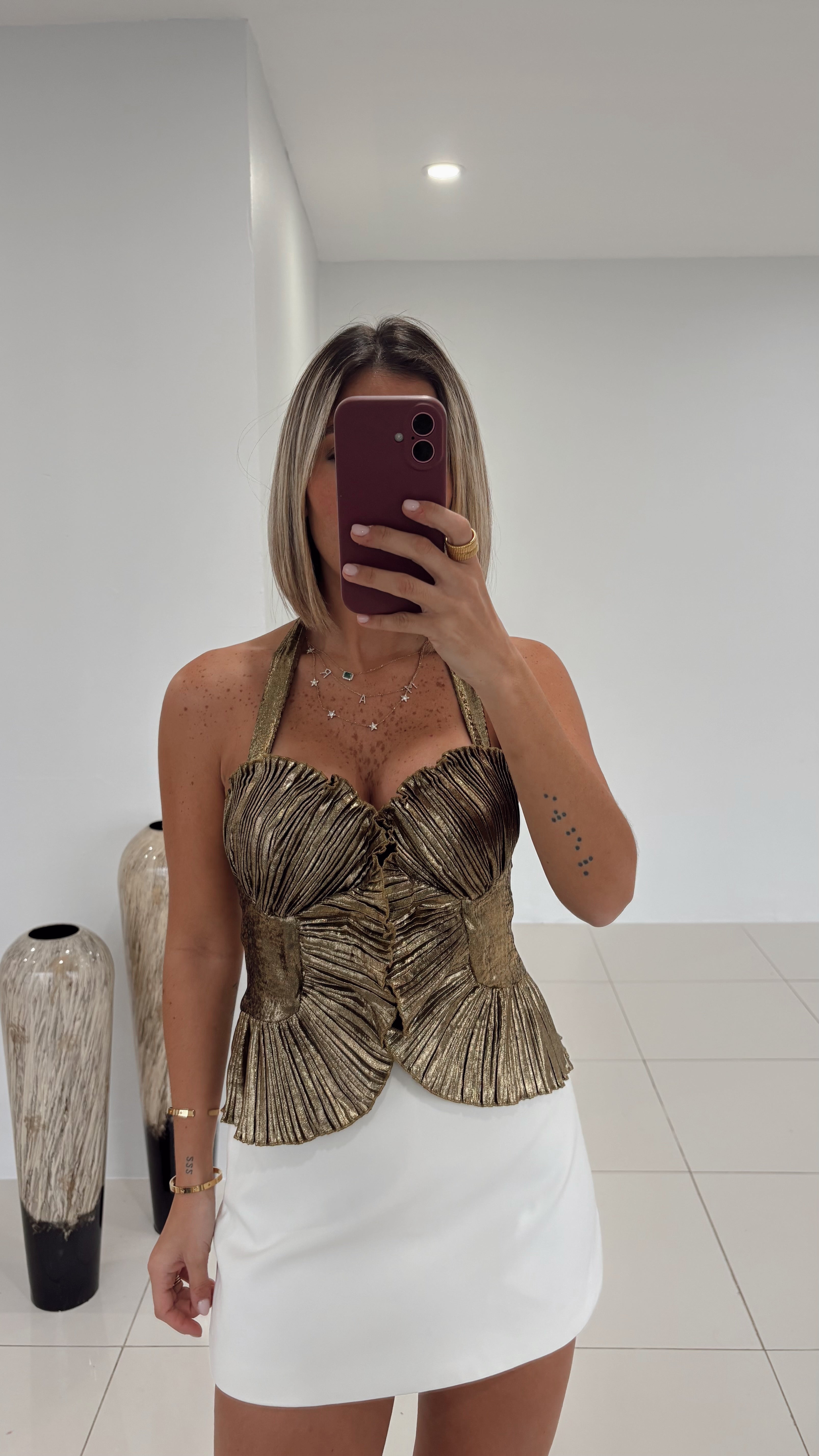 Gold Peyton Pleated Top