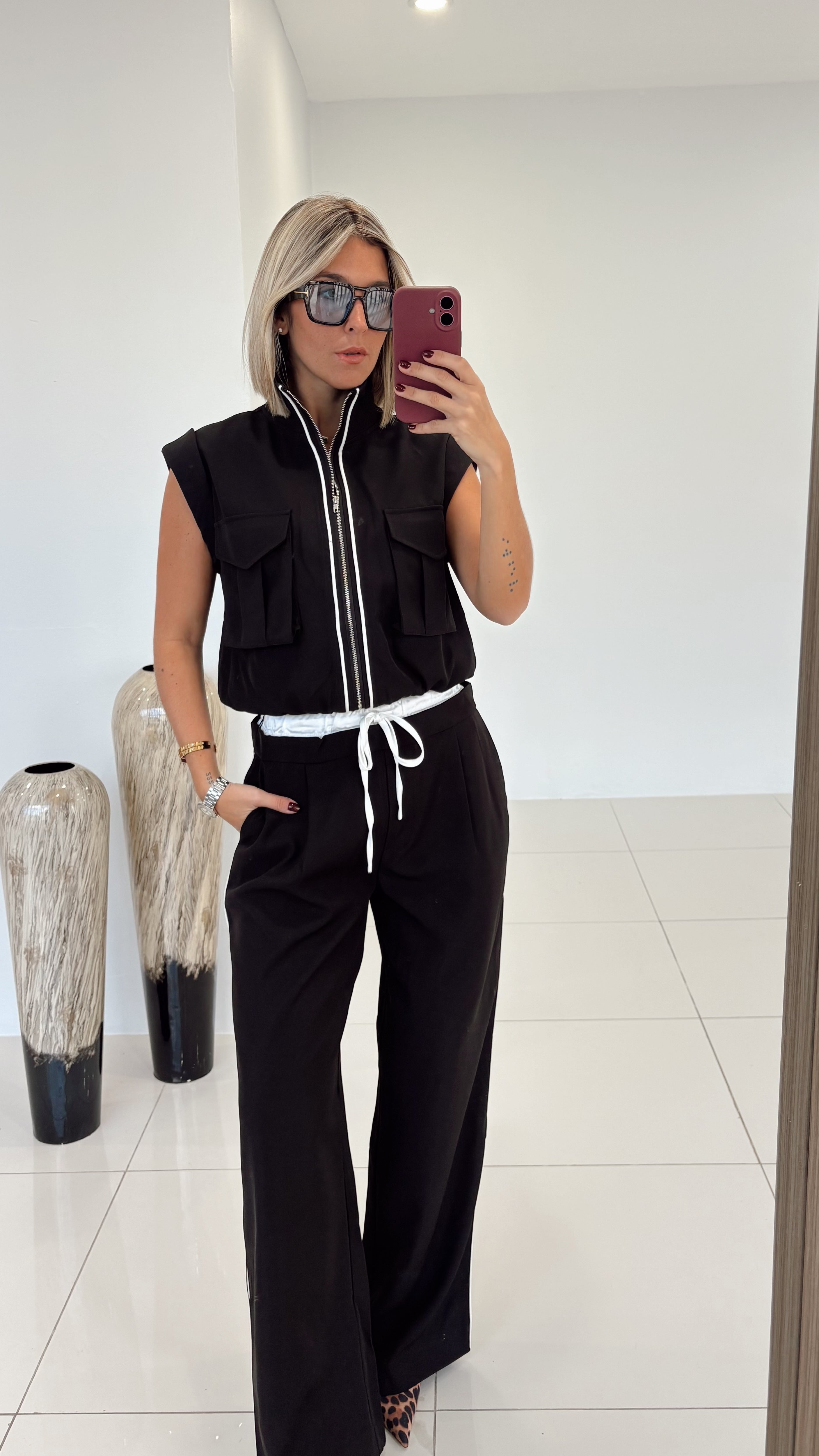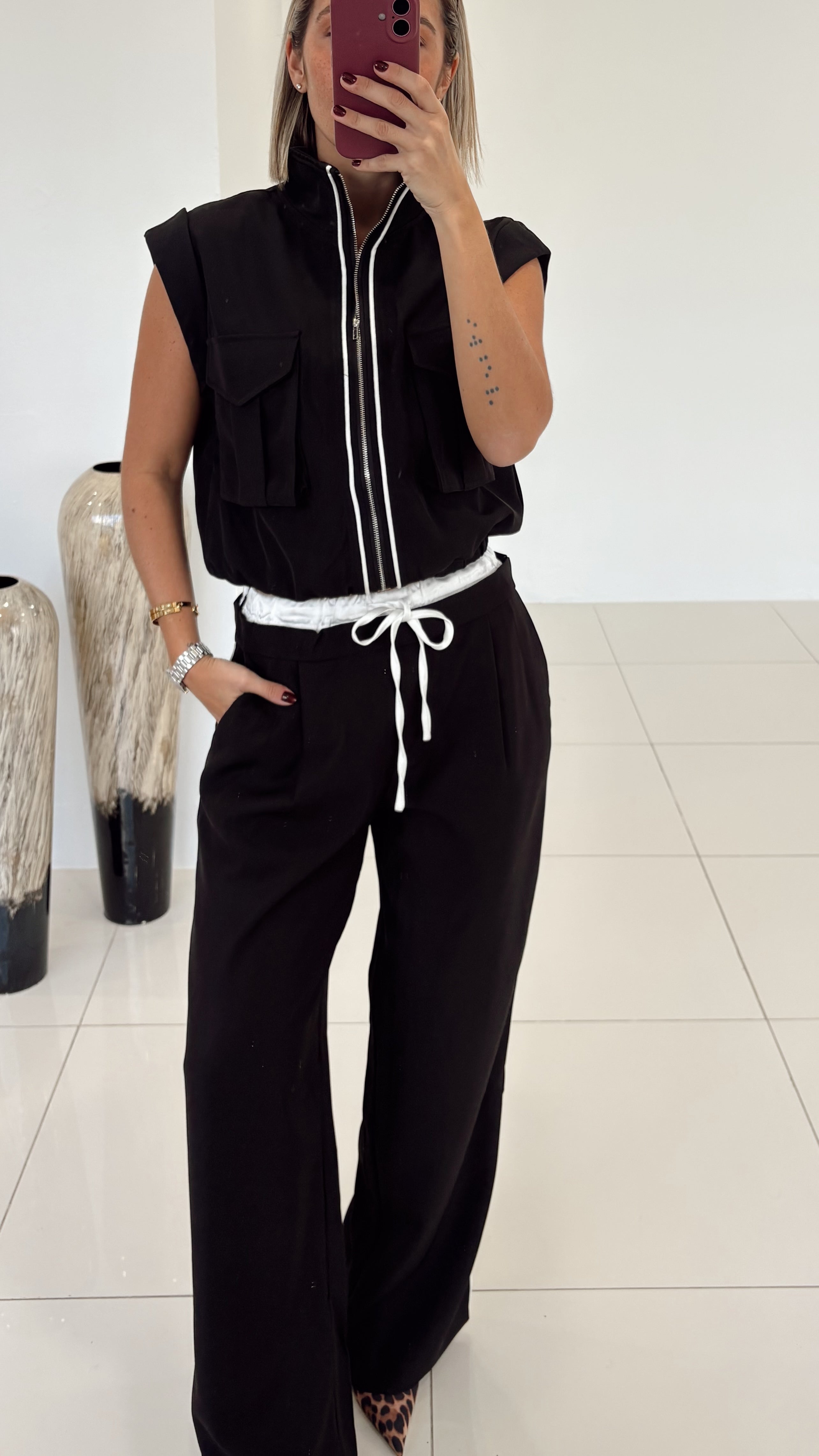 Black Pipa Satin Set