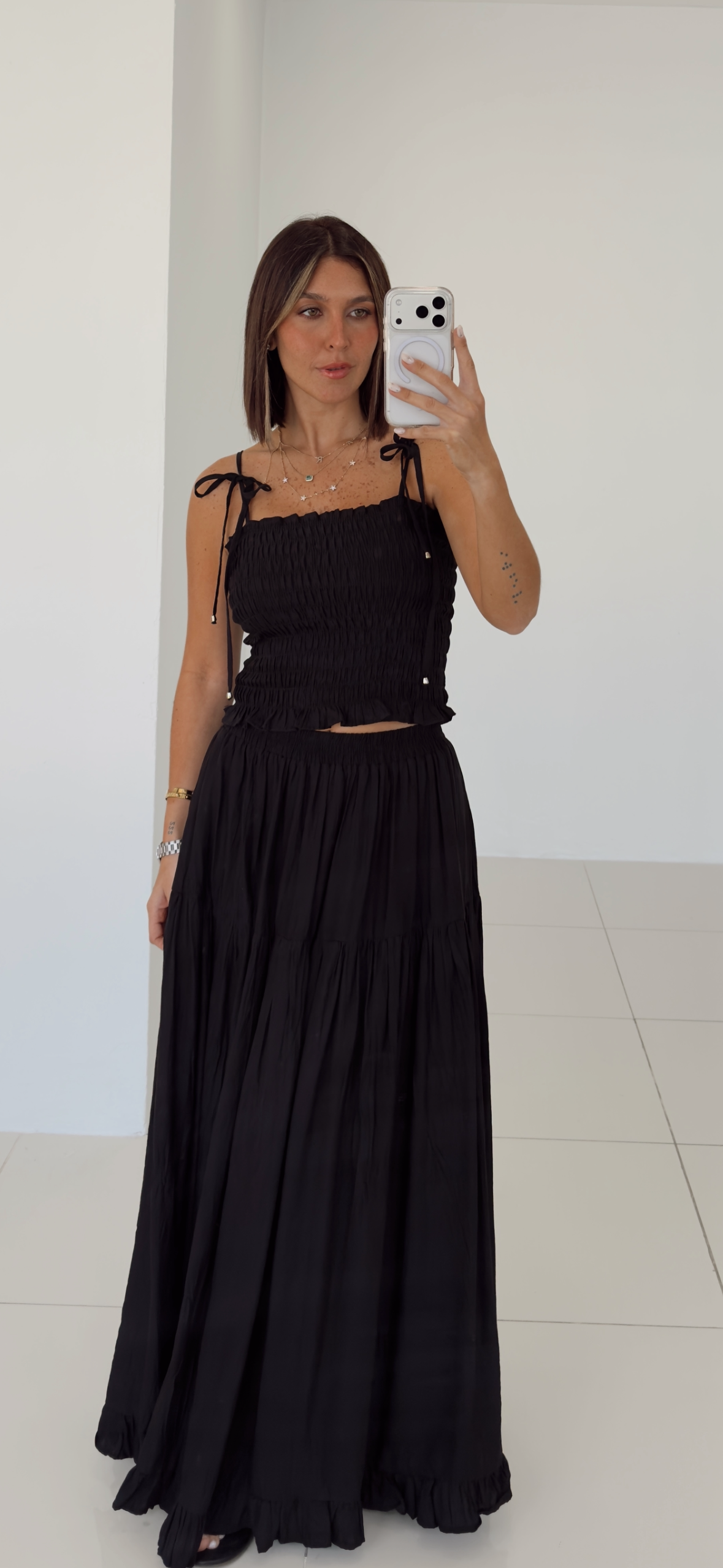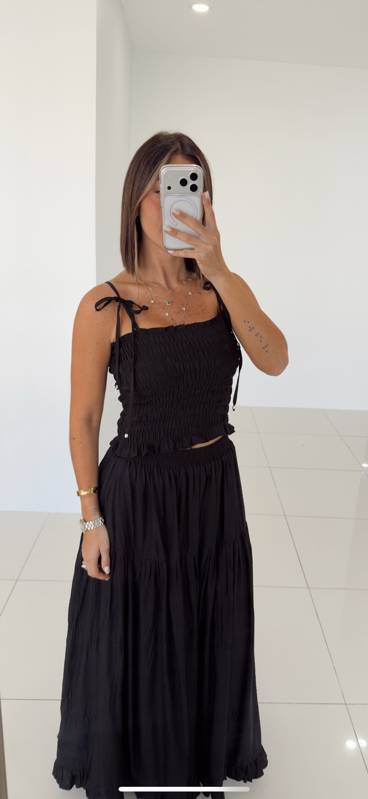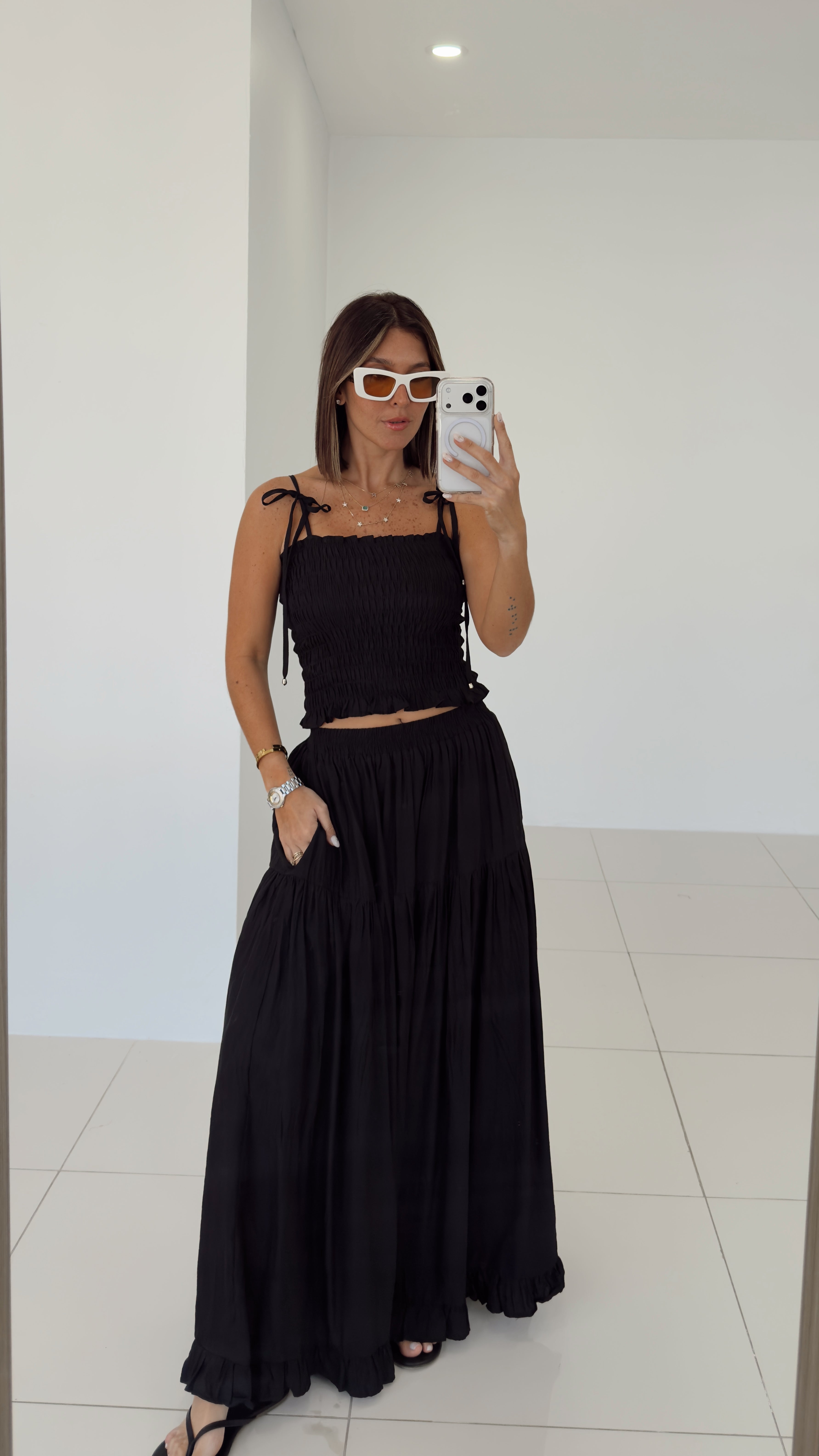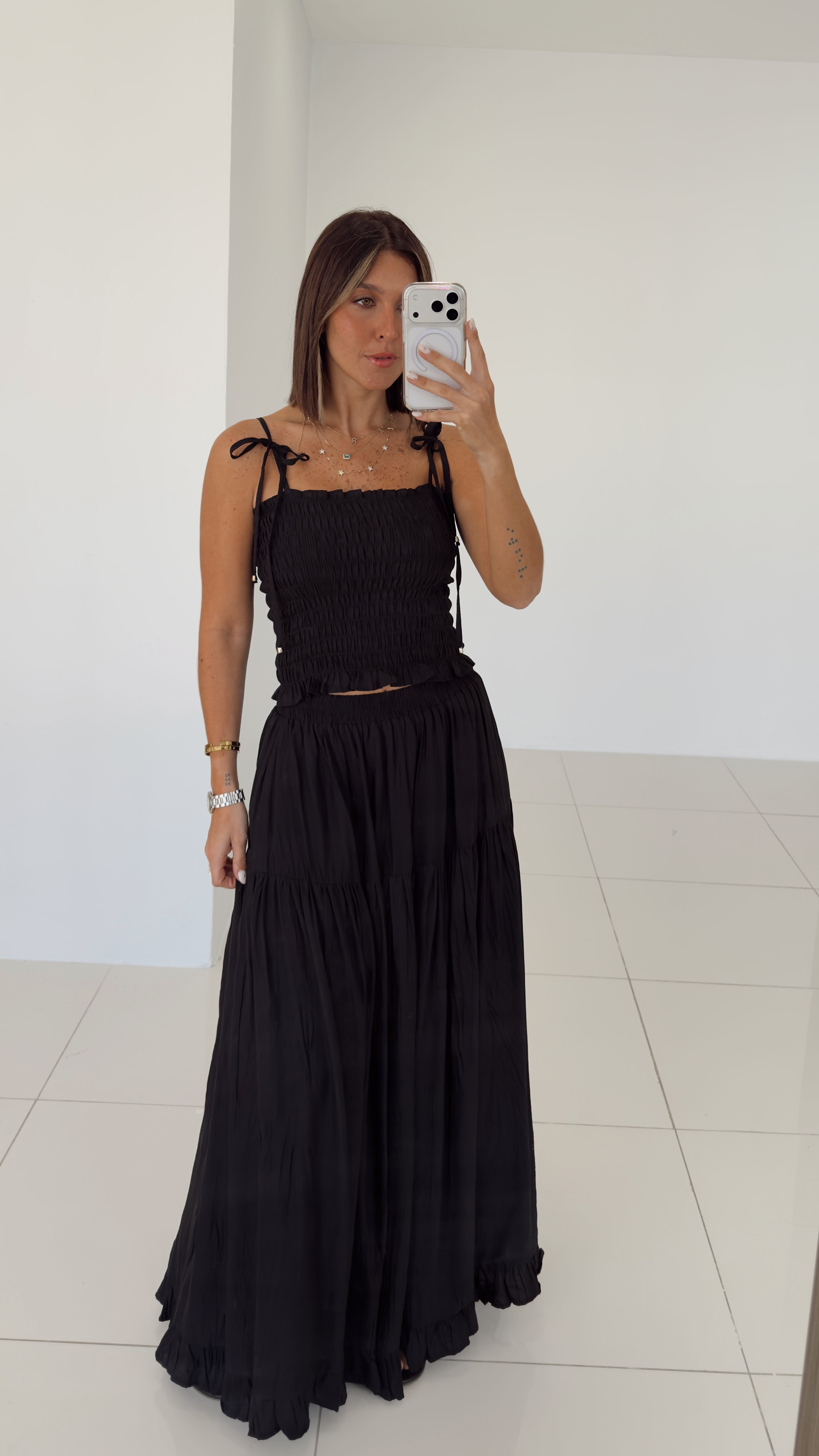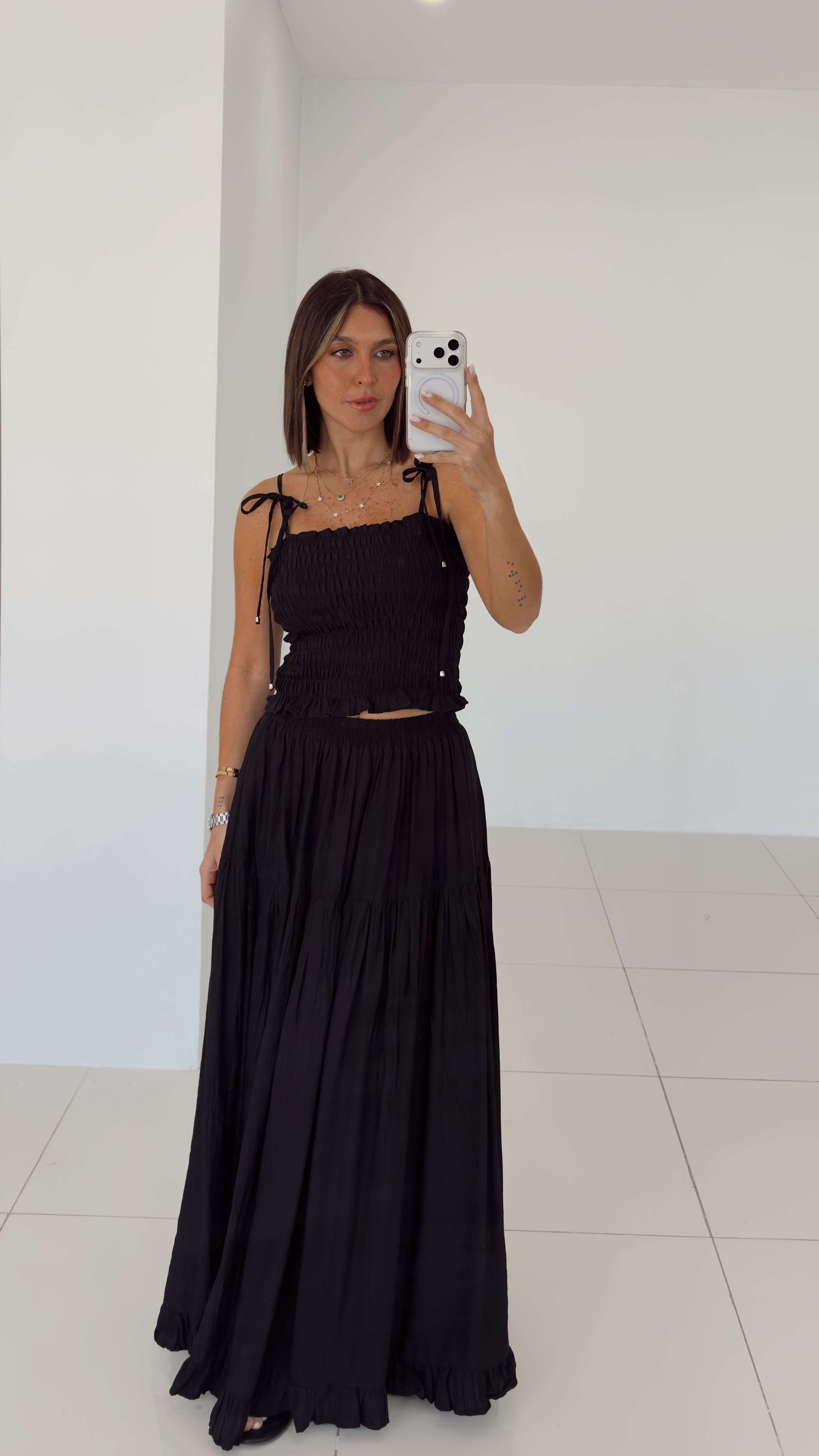 Black Smocking Skirt Set - 07