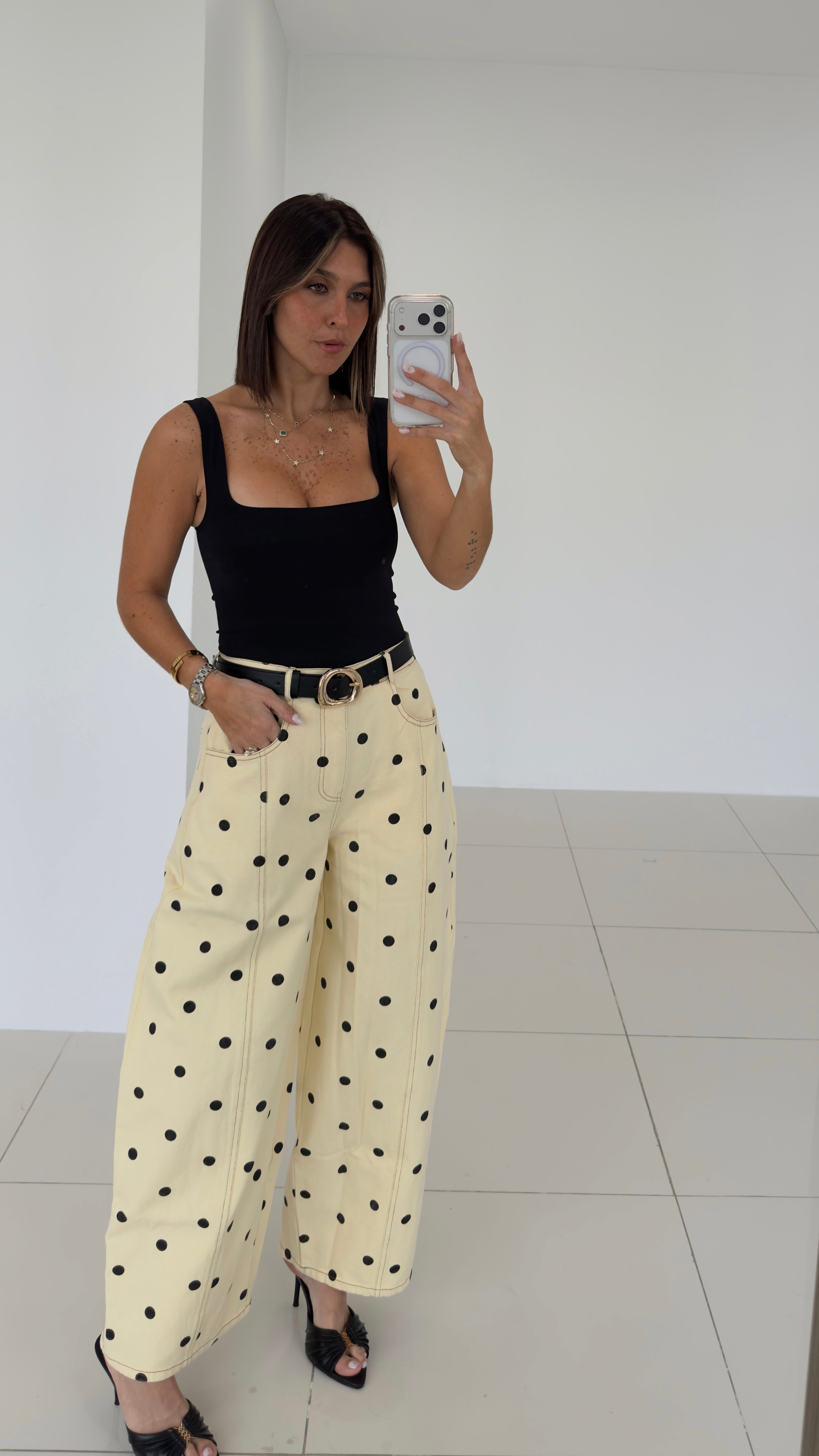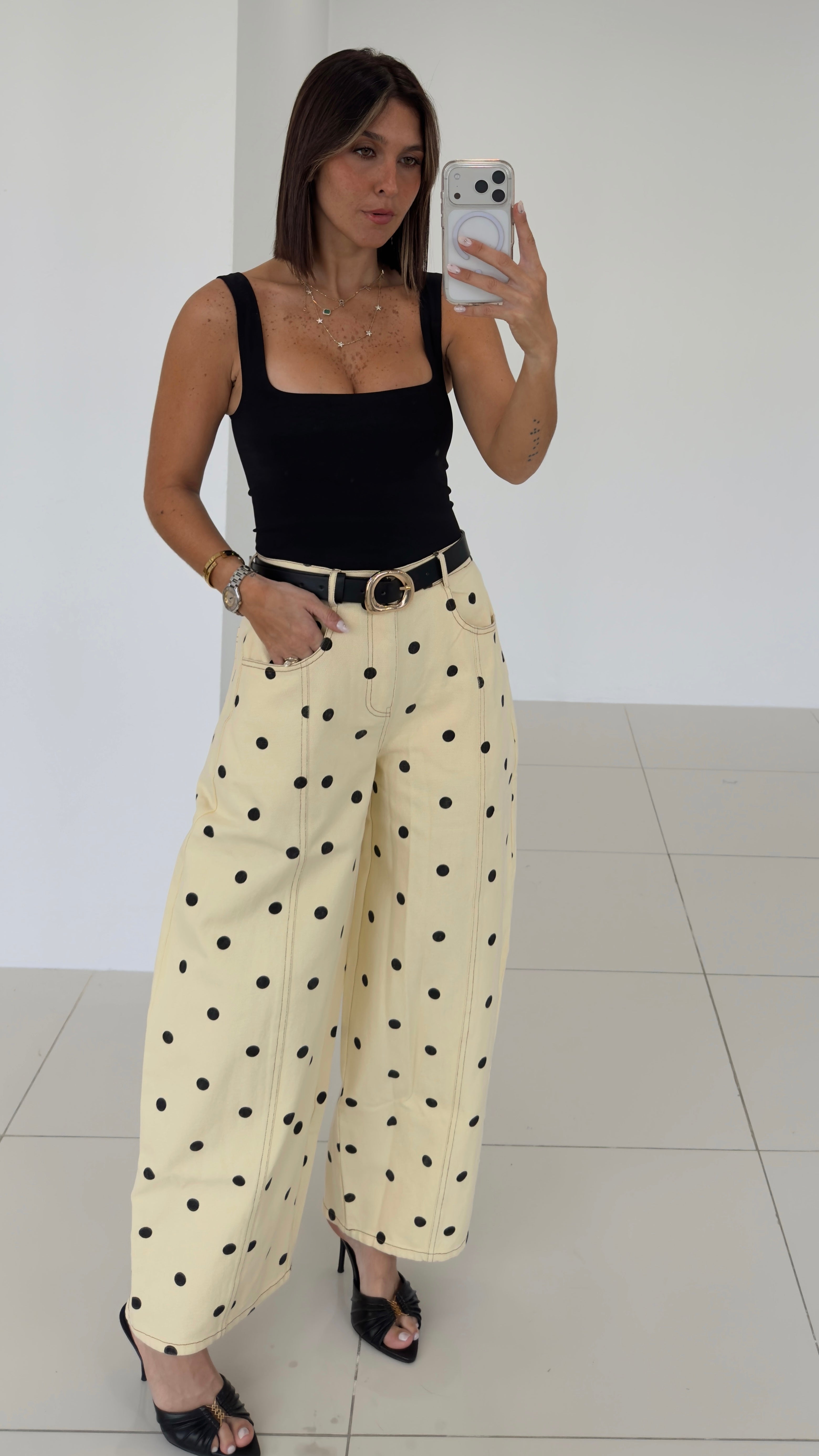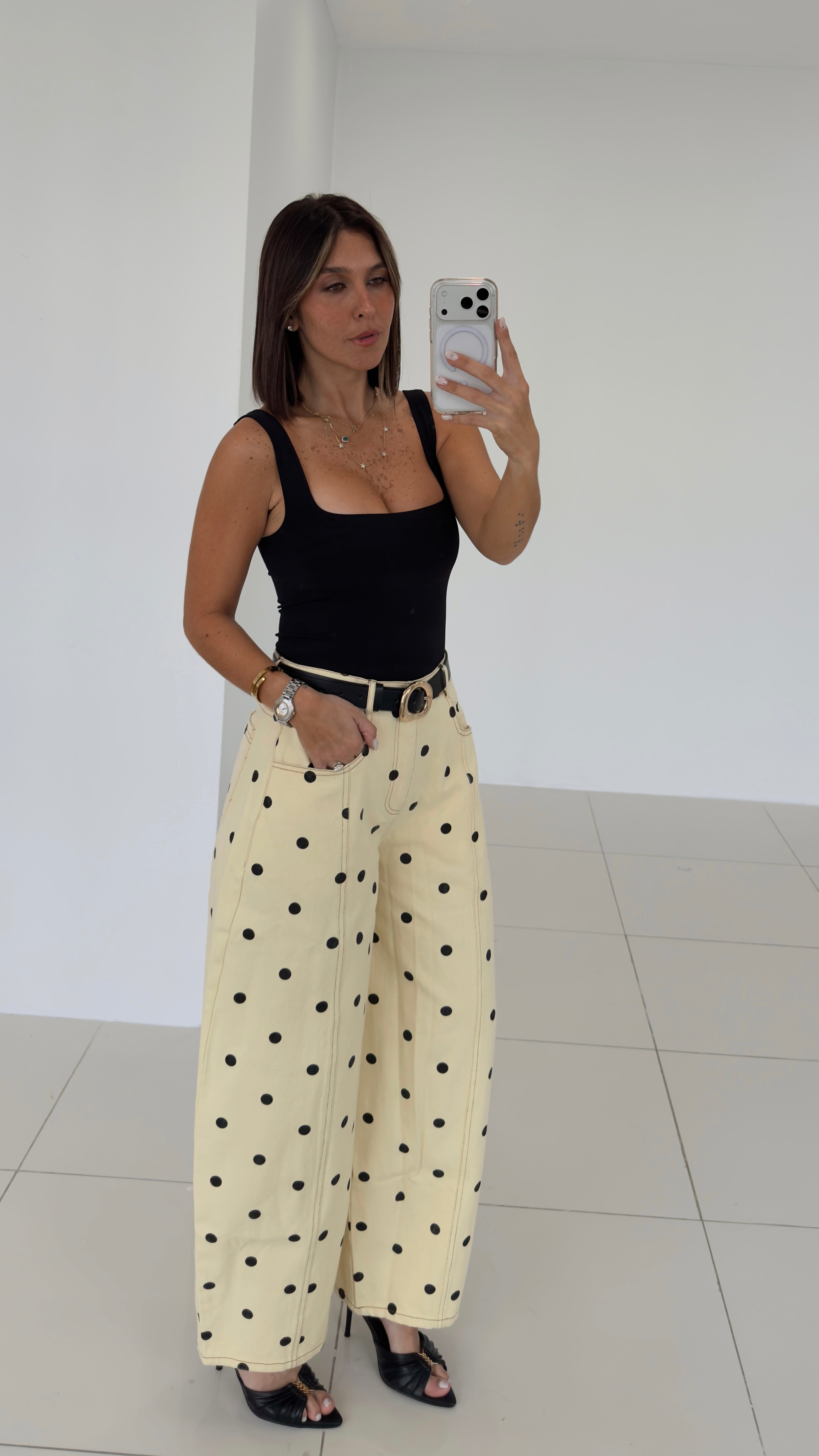 Polka Yellow/Black Barrel Jean 13