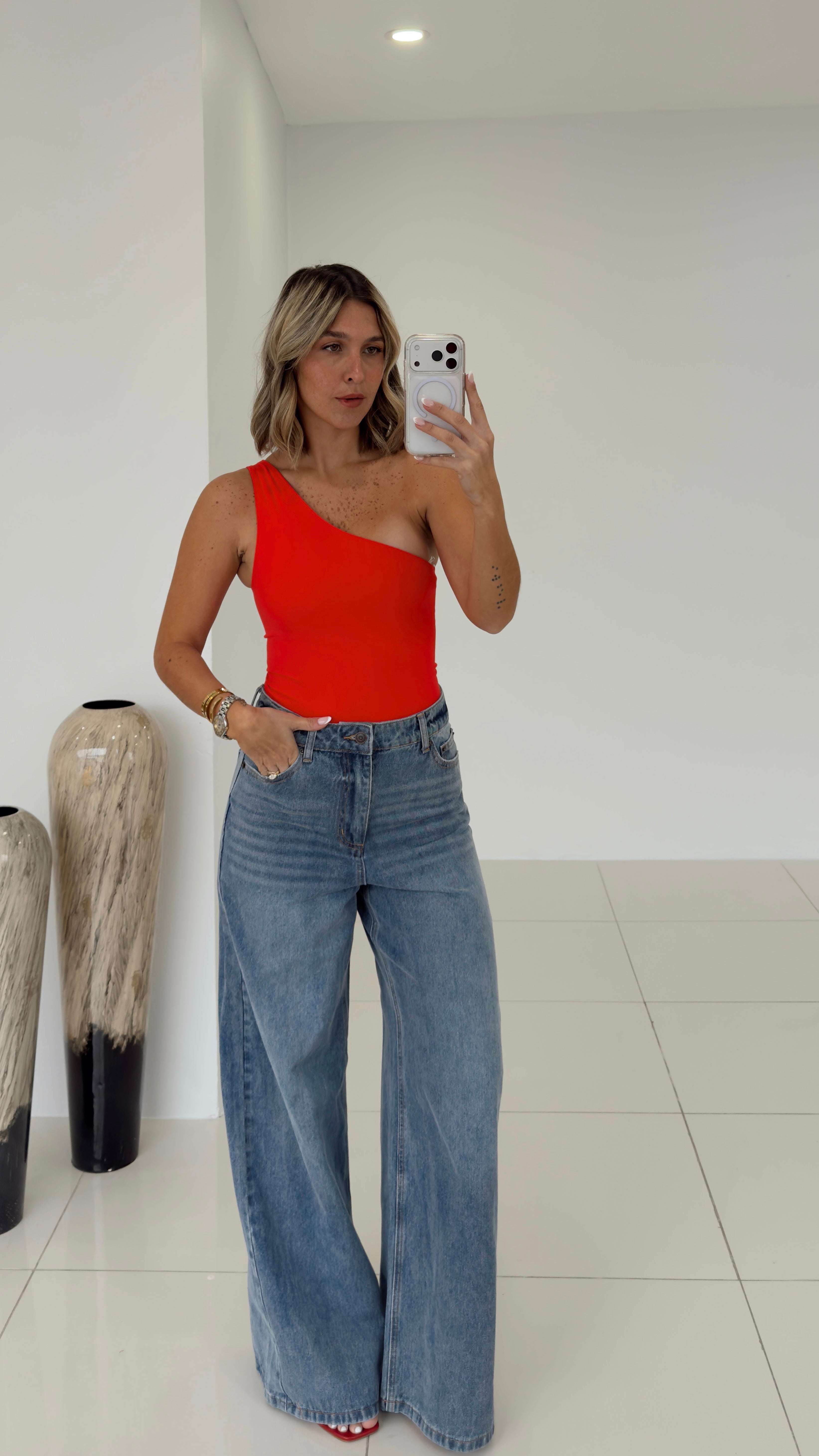 Red - One Shoulder Seamless Bodysuit