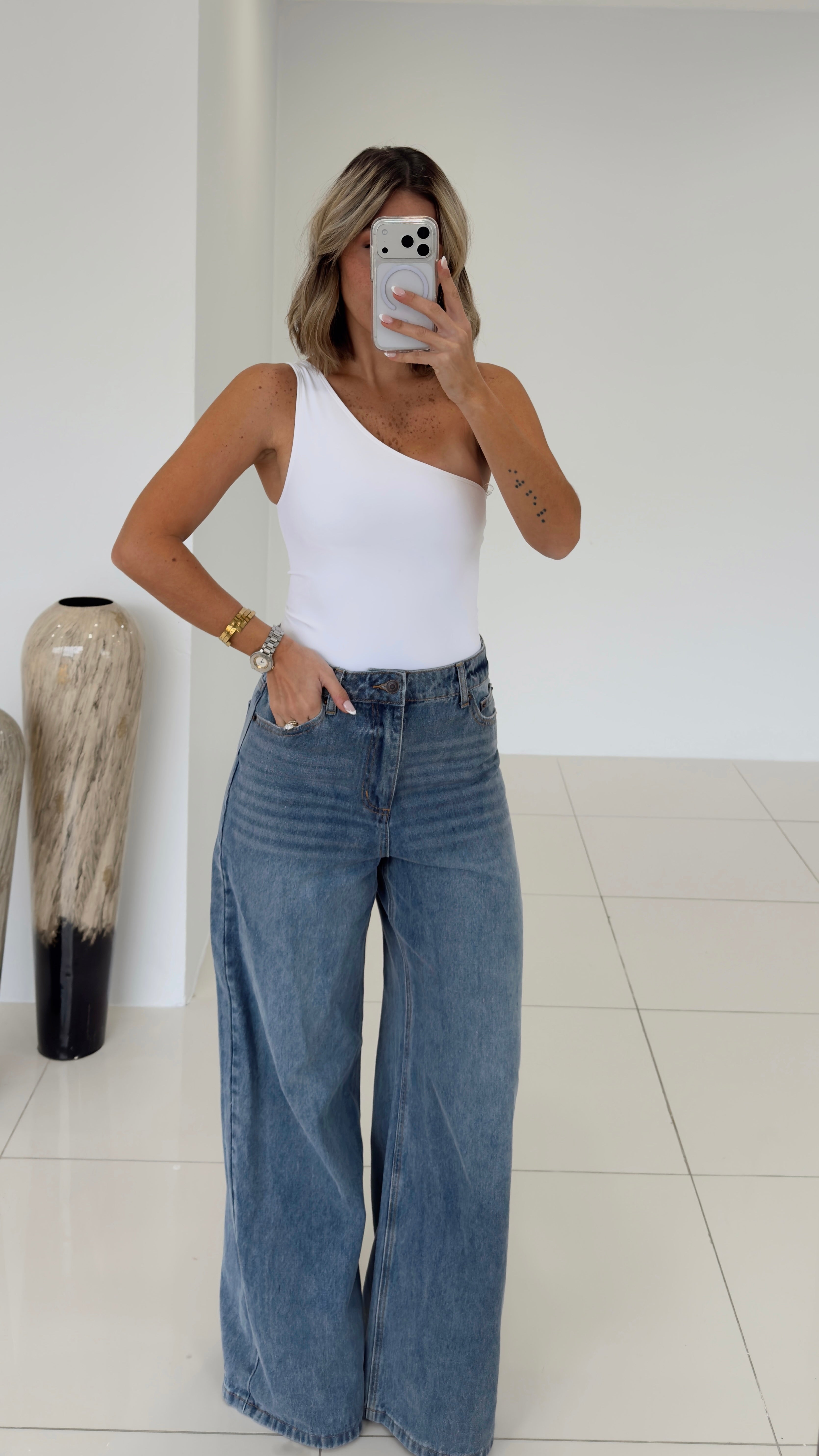 White - One Shoulder Seamless Bodysuit