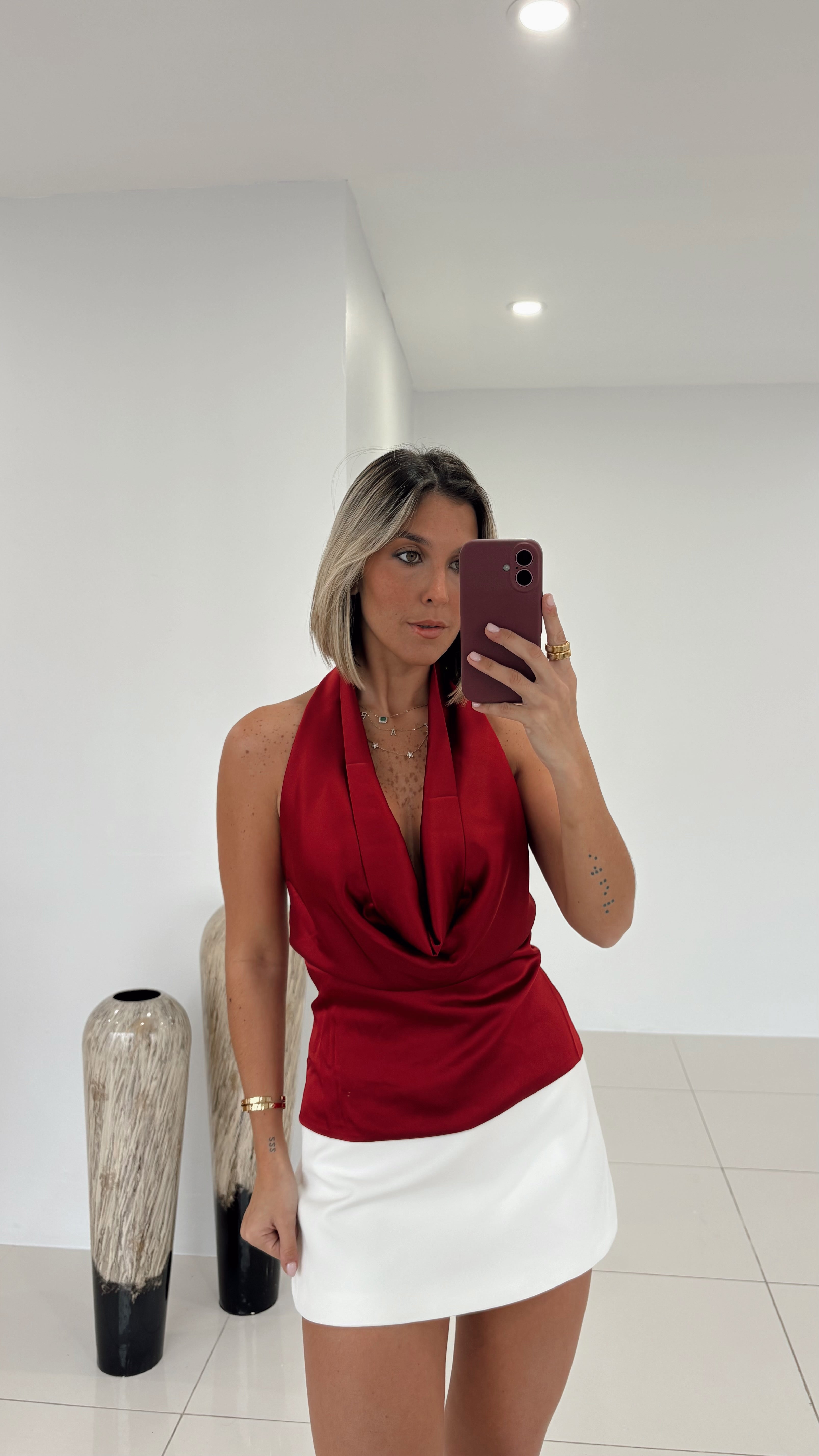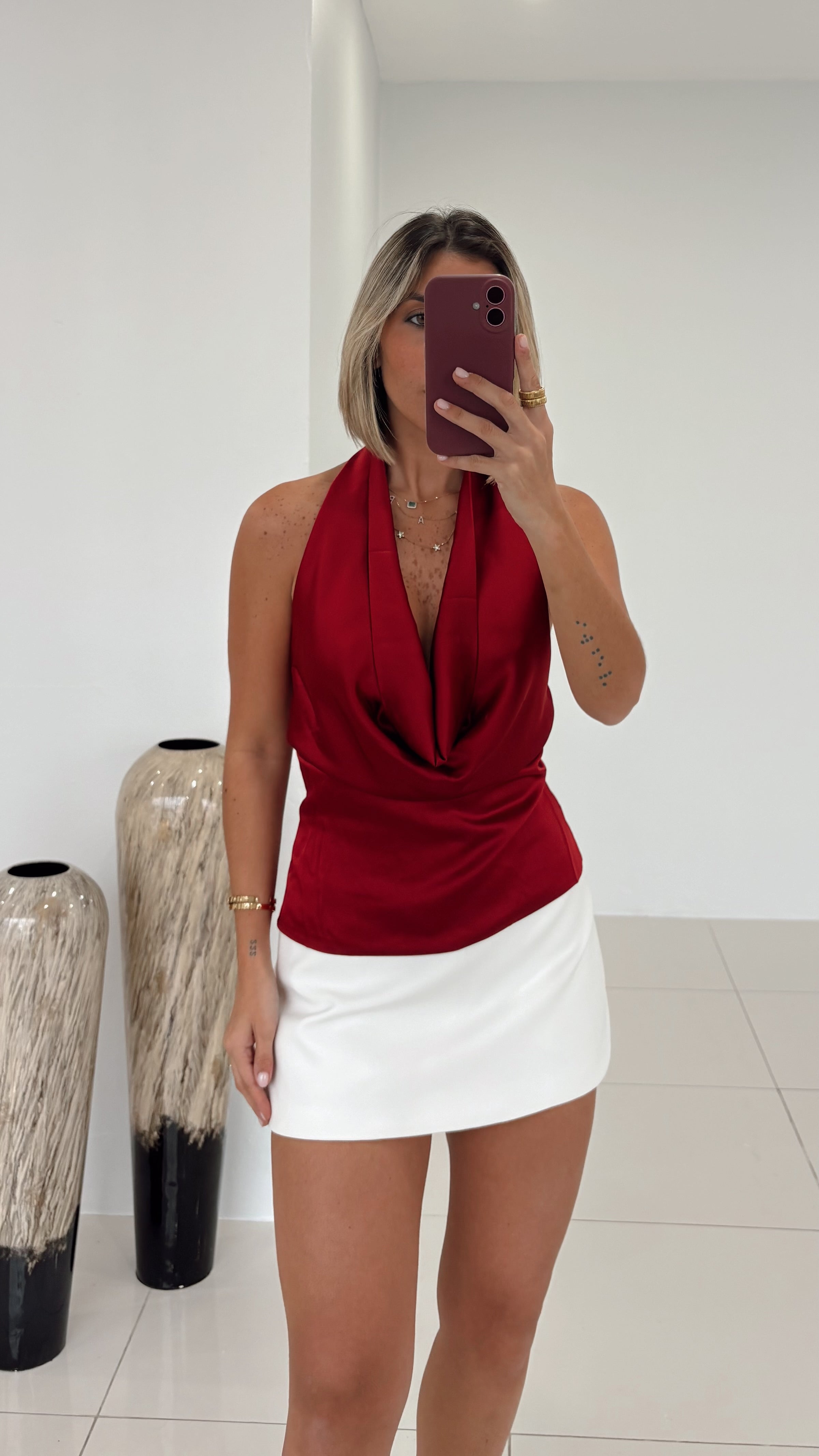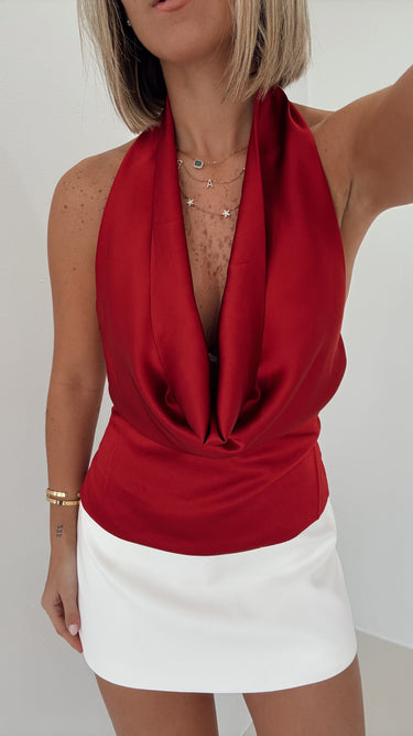 Wine - Satin Cowl Neck Top